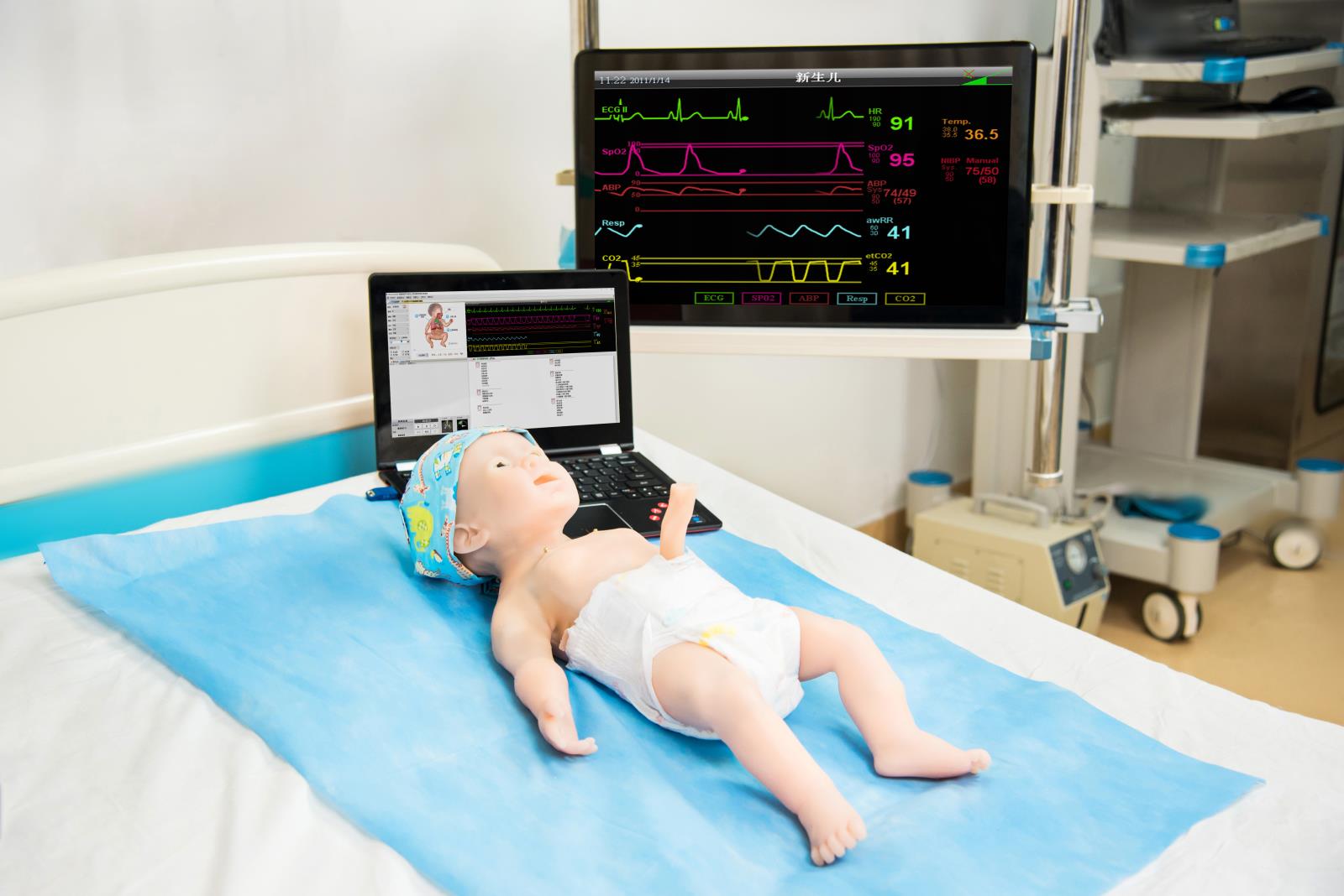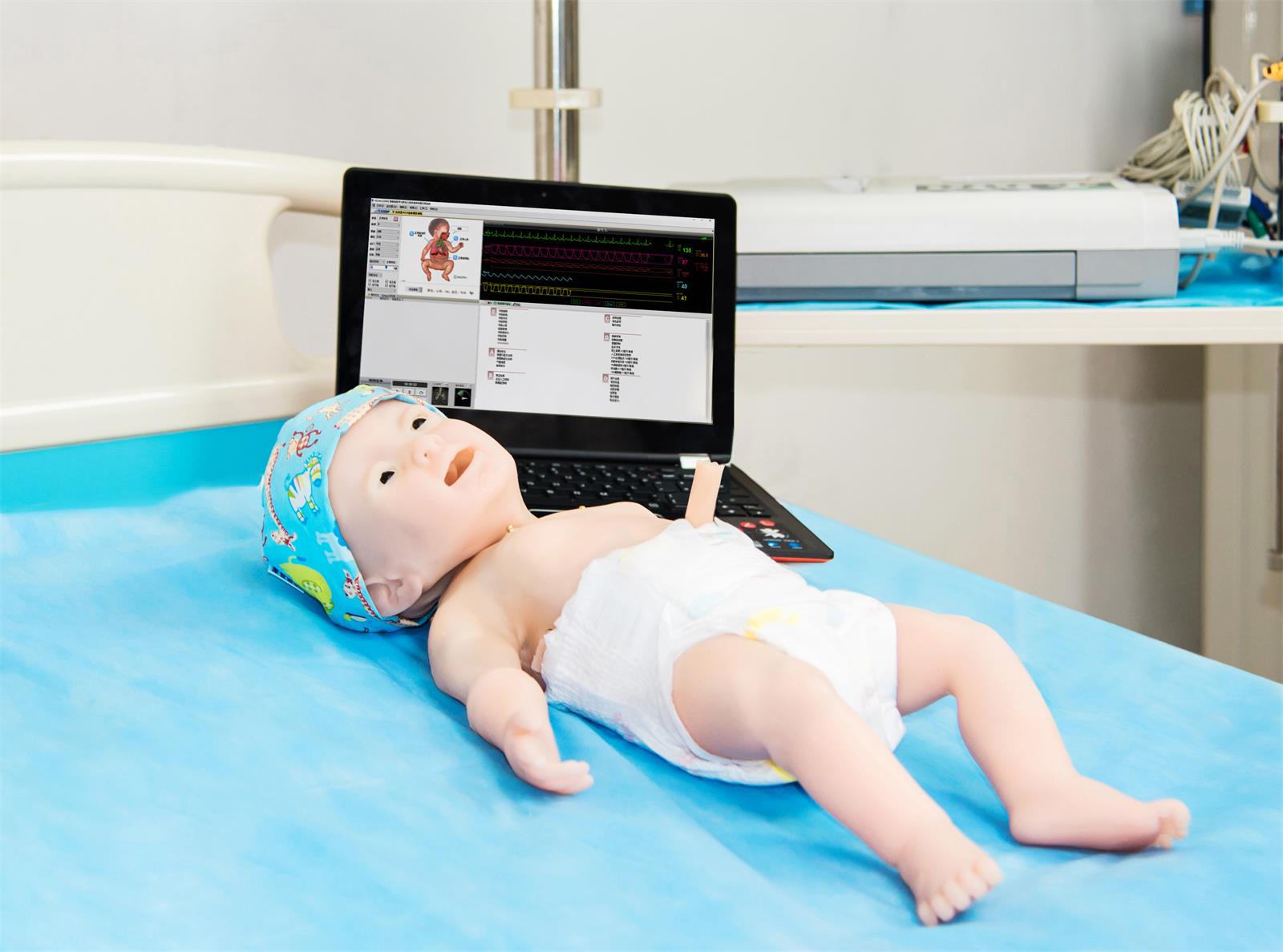 该系统为无线操控,提供新生儿ACLS训练,全真模拟真实的急救场景。可真实模拟急诊新生儿的所有相关体征,如瞳孔状态、动脉搏动、紫绀、抽搐、心音肠鸣音听诊等,并可使用一切临床急救措施如除颤、起搏、CPR、导尿、药物治疗等临床真实的急救设备均可在本系统上使用。模拟病人根据操作者的不同施救措施,可表现出不同的生命体征变化。开放的病例编辑功能,教师可根据临床实际或教学需要自主编辑所需的急诊病例,供学生训练使用。网络交互功能可完成全体教学,教师可随时获取学生的操作数据,及时纠正或指导。全面提升学员在面对新生儿急救病例时的临床思维能力和团队协作能力。